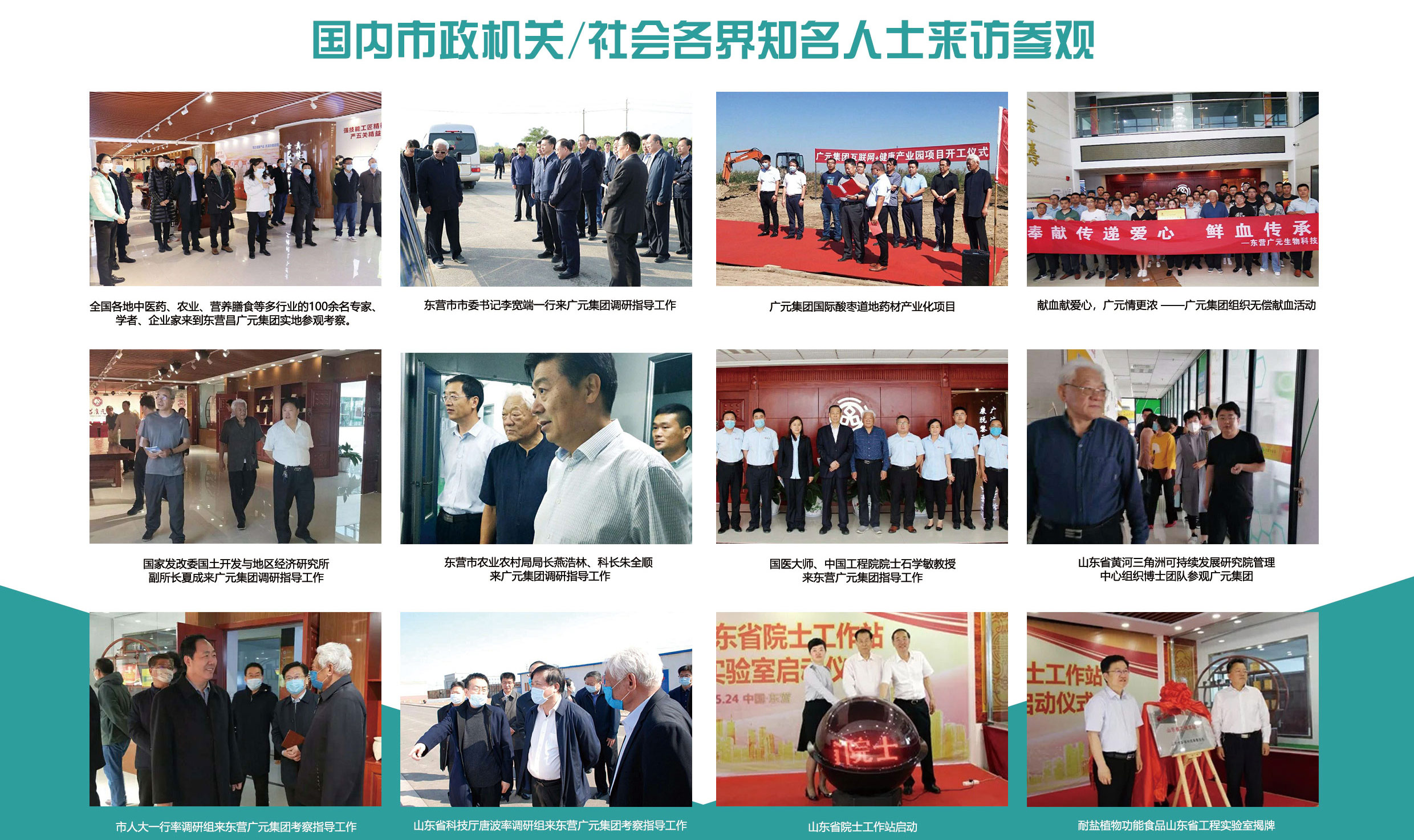 旗下東營廣元生物科技股份有限公司於2003年注冊成立,2014年5月入駐黃河三角洲農業高新技術產業示範區,2016年公司實行集團化運作,是一家集中草藥種植和保健食品及功能食品研發、生產、銷售為一體的高新技術企業。2017年11月集團與中國中醫科學院中醫藥科技合作中心簽訂長期戰略合作協議。為加快產學研一體化進程,集團公司與山東大學、山東中醫藥大學、中國海洋大學、濟南大學、武漢工程大學等多家高校院所建立了長期戰略合作,為集團提供政策、管理、營銷、研發的高端服務。